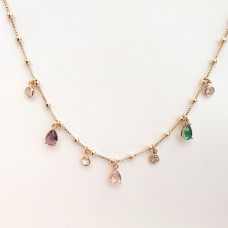 Chocker com zircônias coloridas, com esfera banhada no ouro 18k, hipoalergênico..