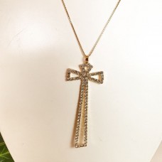 Colar com cruz vazada em zircônias brancas, vazada, no banho de ouro 18k, hipoalergênico..